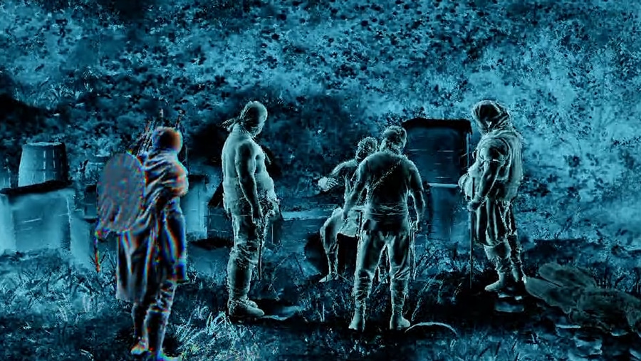 Primeiramente, derrote os bandidos no acampamento. Em seguida, segure L1 para acionar a lanterna e localizar os fantasmas azuis. Após registrar o fragmento, acesse a Visione pelo inventário e assista à memória. Por fim, volte ao NPC Bremer para concluir a missão.